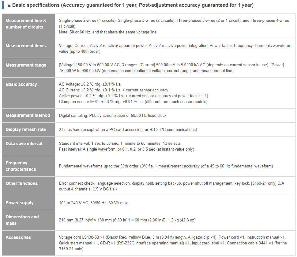For 50/60 Hz commercial power lines 1P2W to 3P4W